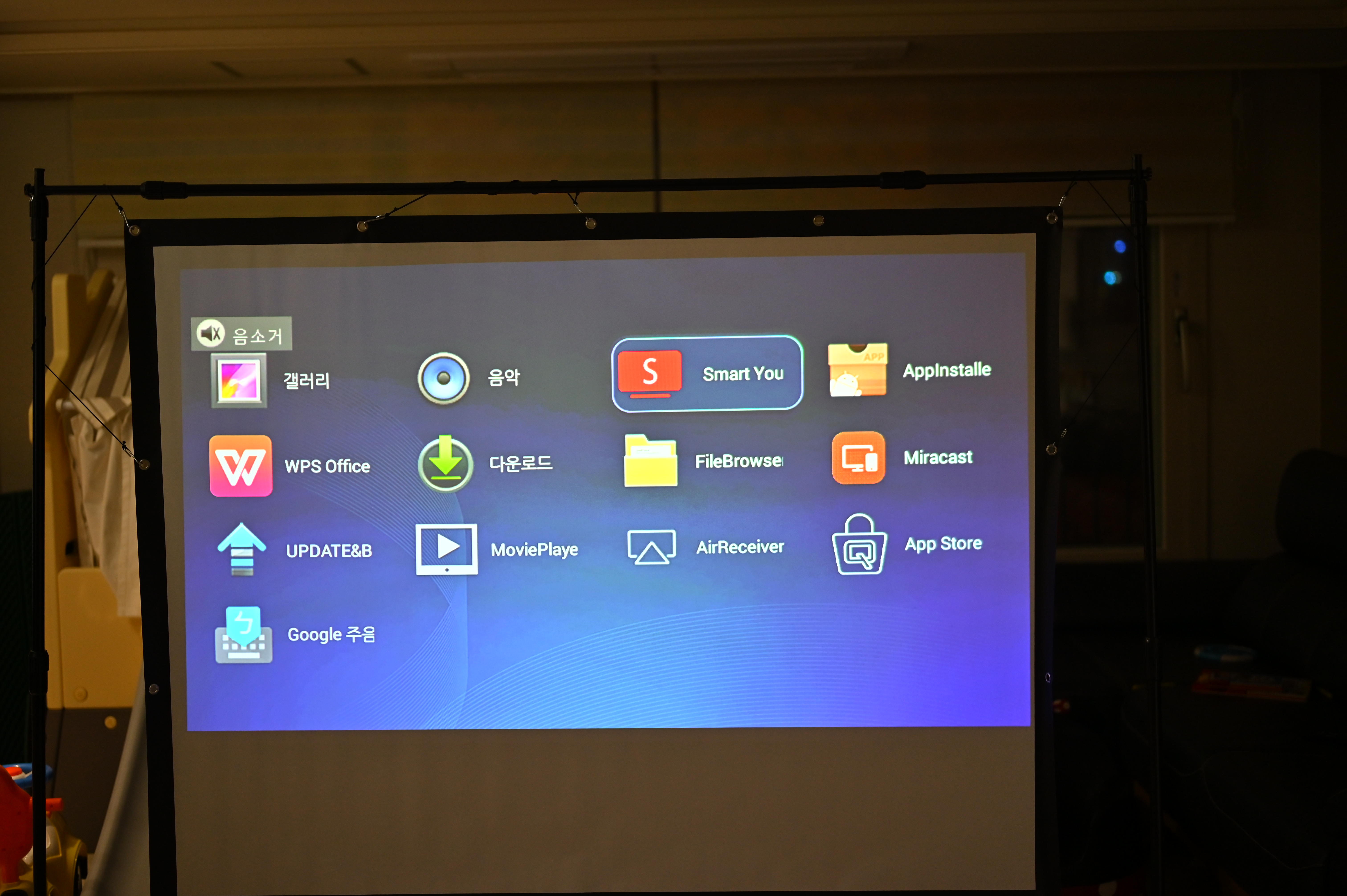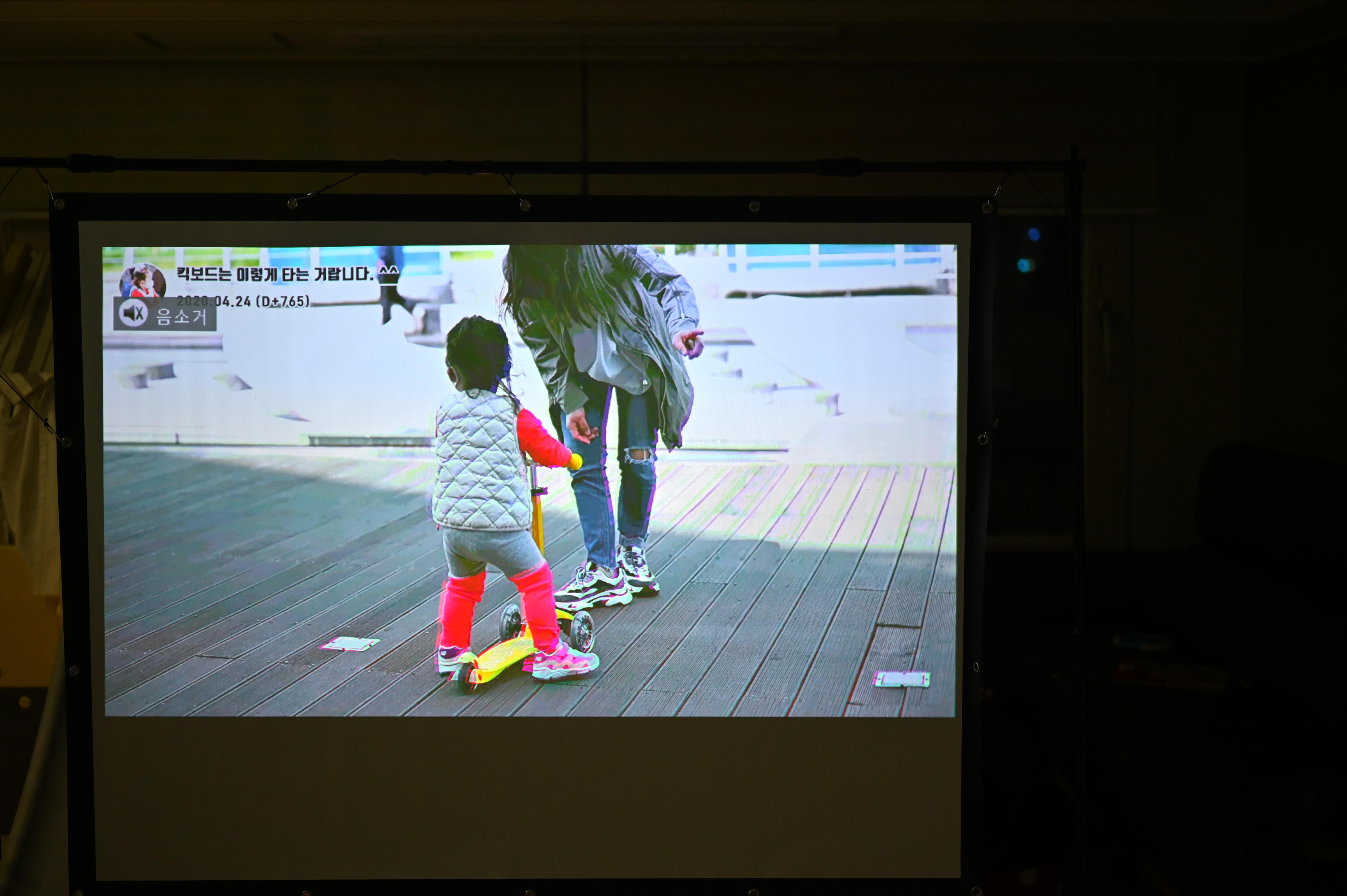 거리 측정을 안 해봐서 모르겠지만, 80인치 스크린의 거리보다 약 2배 거리가 되니 상당히 큰 화면이겠죠..